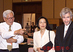 羅豪才與袁明和諾倫交談(圖文) 2000年6月21日 18:03 ![]() 全國(guó)政協(xié)副主席、“21世紀(jì)論壇”2000年會(huì)議組委會(huì)副主席羅豪才(左)16日在會(huì)議休息時(shí),與北京大學(xué)國(guó)際關(guān)系研究所所長(zhǎng)袁明(中)、英國(guó)劍橋大學(xué)“中國(guó)管理辦公室”高級(jí)經(jīng)濟(jì)學(xué)家諾倫在一起談笑風(fēng)生。中新社記者:李剛