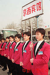 賓館禮儀小姐機(jī)場迎接兩會代表 2000年3月2日 09:12 ![]() 北京各賓館的禮儀小姐三月一日到機(jī)場迎接參加“人大”、“政協(xié)”會議的代表和委員們。作者:王麗南