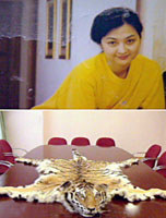 圖:賴(lài)昌星賄賂廈門(mén)海關(guān)關(guān)長(zhǎng)的美女、虎皮 2001年08月19日 18:45 ![]() 賴(lài)昌星用以打倒廈門(mén)海關(guān)關(guān)長(zhǎng)楊前線的糖衣炮彈——美女和虎皮。上圖為美女名周兵,她為楊前線生了一個(gè)兒子。下圖為價(jià)值77.7萬(wàn)元人民幣的華南虎皮。