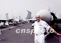 組圖:美國海軍航空母艦“星座號”抵達(dá)香港訪問 2001年08月20日 17:35 ![]() 美國海軍航空母艦“星座號”20日抵達(dá)香港訪問,該艦載有約八十架戰(zhàn)機(jī),是美國現(xiàn)役海軍最具規(guī)模的船艦之一。中新社傳真 盧峰 攝 ![]() 美國航空母艦“星座號”20日抵達(dá)香港,進(jìn)行補(bǔ)給及維修,并公開予傳媒參觀。圖為一名海軍士兵向傳媒介紹艦上設(shè)施。中新社傳真 盧峰 攝