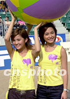 組圖:樂壇組合Twins為沙灘排球賽營造氣氛 2001年08月23日 08:50 ![]() 樂壇女子組合Twins兩位歌手蔡卓妍(左)、鍾思桐(右)22日出席世界女子沙灘排球香港公開賽為觀眾歌唱表演,并與現場觀眾玩巨型沙灘球,增添樂趣營造氣氛。中新社傳真 鄧慶樂 攝 ![]() 樂壇女子組合Twins兩位歌手蔡卓妍(右)、鍾思桐(左)22日出席世界女子沙灘排球香港公開賽,手持沙灘排球,表現健康活力形象。中新社傳真 鄧慶樂 攝