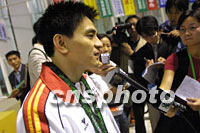 圖文:熊倪奪得三米板金牌 深情告別運(yùn)動(dòng)生涯 2001年11月16日 23:30 ![]() 包括肖海亮、王峰、王天凌等十位世界冠軍參賽的男子三米板之戰(zhàn)十六日晚落下帷幕,老將熊倪不負(fù)眾望摘得該項(xiàng)金牌。中新社記者 鄭萍萍 攝 ![]() 最后一次以運(yùn)動(dòng)員身份露面的老將熊倪,16日在九運(yùn)會(huì)上摘取三米板金牌后被眾多媒體包圍采訪(fǎng)。中新社記者 鄭萍萍 攝