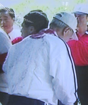 圖文:被潑墨水、撒尿液 李登輝拉票又被擲雞蛋 2001年11月21日 09:06 ![]() 去年5月27日 李登輝在住家附近被潑紅墨水。 ![]() 李登輝出門總是惶惶然 ![]() 李登輝狼狽不堪 中新網(wǎng)香港11月21日消息:臺北訊,退而不休的李登輝昨晚在云林縣北港鎮(zhèn)為“臺聯(lián)”黨“立委”候選人拉票時(shí),突然被臺下民眾擲雞蛋,并被痛罵“禍臺殃民”,場面一度混亂。 昨晚8時(shí)25分左右,李登輝開始演講后不久,突然被臺下新黨籍“立委”候選人何振盛用紙張包裹一顆雞蛋朝臺上丟擲。 何振盛在被帶上警車之前,還大聲罵:“李登輝禍臺殃民”、“李登輝賣黨求榮”等。 警方在偵訊時(shí),何振盛表示,李登輝分化族群,是造成臺灣的亂源,他是要叫李登輝不要再出現(xiàn)。 李登輝下臺以后,不守退休后“去山區(qū)傳教”的承諾,再次跳出來作秀,受到臺灣諸多民眾的指責(zé),更有民眾聲稱組成“鋤奸團(tuán)”,要為民除害。 據(jù)聯(lián)合報(bào)報(bào)道,除了昨天遭雞蛋襲擊外,李登輝至少還發(fā)生過五次受到民眾暗中攻擊的狀況。 包括去年當(dāng)局領(lǐng)導(dǎo)人選舉后,被憤怒的民眾潑了一身的紅墨水,以及今年九月間在臺南縣身體不適、本月初在北宜公路上嚴(yán)重暈眩嘔吐、兩個(gè)月前還在大高雄地區(qū)發(fā)生過群眾暗持小刀伺機(jī)偷襲,以及群眾攜帶內(nèi)裝尿液的塑料袋計(jì)劃攻擊的事件。 相關(guān)報(bào)道:圖文:李登輝退而不休帶病造勢差點(diǎn)昏迷不醒 相關(guān)報(bào)道:圖文:李登輝住處為違章建筑 臺北市限期拆除 相關(guān)報(bào)道:多名李登輝保鏢因與“臺聯(lián)”意見不和申退 相關(guān)報(bào)道:國民黨忍無可忍終于開鍘 宣布撤銷李登輝黨籍 相關(guān)報(bào)道:不堪鏡頭讓女傭惶恐萬分 臺新書大曝李登輝緋聞 相關(guān)報(bào)道:《世界日報(bào)》:處分漢奸內(nèi)賊李登輝 相關(guān)報(bào)道:李登輝再次鼓吹小泉參拜靖國神社很自然 相關(guān)報(bào)道:日本雜志證實(shí)李登輝曾接受采訪 支持小泉參拜 相關(guān)報(bào)道:臺灣“鋤奸團(tuán)”要格殺李登輝護(hù)衛(wèi)加派兩倍 相關(guān)報(bào)道:不容破壞統(tǒng)一 臺灣一男子造炸彈迎接李登輝 相關(guān)報(bào)道:調(diào)查顯示,李登輝退而不休逾半臺灣民眾搖頭 相關(guān)報(bào)道:李登輝赴日活動共五天 治病不足兩小時(shí) 相關(guān)報(bào)道:多圖:臺灣70歲老兵怒斥李登輝禍國毀黨 相關(guān)報(bào)道:臺灣一女子攔路自認(rèn)李登輝骨肉 相關(guān)報(bào)道:多圖:李登輝今早遭憤怒民眾潑灑紅墨水 |