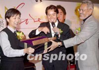 組圖:譚詠麟將舉行"港樂(lè)·Alan Live"音樂(lè)演唱會(huì) 2001年12月18日 19:33 ![]() 「港樂(lè)·Alan Live」演唱會(huì)18日在香港舉行記者會(huì),「港樂(lè)」回饋一張以譚詠麟為肖像,并由全樂(lè)團(tuán)成員簽名的撲克牌King,喻意他在樂(lè)壇的皇牌地位。中新社傳真 鄧慶樂(lè) 攝 ![]() 香港管弦樂(lè)團(tuán)在著名指揮家葉詠詩(shī)領(lǐng)導(dǎo)下,將與樂(lè)壇長(zhǎng)青樹(shù)譚詠麟首度合作,舉行名為「港樂(lè)·Alan Live」演唱會(huì),18日在香港舉行記者會(huì),譚詠麟向葉詠詩(shī)贈(zèng)予貴重的純銀指揮棒,以表示其過(guò)人的音樂(lè)造詣。中新社傳真 鄧慶樂(lè) 攝