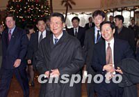 圖文:澳門特區(qū)行政長(zhǎng)官何厚鏵抵達(dá)北京述職 2001年12月25日 17:36 ![]() 前來述職的澳門特別行政區(qū)行政長(zhǎng)官何厚鏵,二十五日抵達(dá)北京并下榻港澳中心。國務(wù)院港澳辦公室副主任陳佐洱在港澳中心大堂迎接。中新社記者 毛建軍 攝 ![]() 前來述職的澳門特別行政區(qū)行政長(zhǎng)官何厚鏵,二十五日抵達(dá)北京并下榻港澳中心,國務(wù)院港澳辦公室副主任陳佐洱在港澳中心大堂迎接。中新社記者 毛建軍 攝