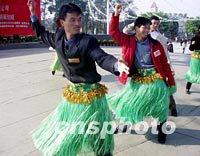 圖:廣州小伙學(xué)跳毛利風(fēng)情舞表達(dá)愛意 2002年01月02日 18:37 ![]() 在元旦期間舉行的首屆南方白領(lǐng)情緣聯(lián)誼活動上,廣州的小伙子跟著毛利族姑娘跳起了毛利風(fēng)情舞,學(xué)著用臀部語言向戀人表達(dá)“我愛你”。中新社圖 柯小軍 攝 |