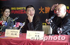 圖文:《大腕》登陸香港 馮小剛攜主角宣傳造勢 2002年03月13日 17:52 ![]() 電影《大腕》導(dǎo)演馮小剛(中)、男女主角葛優(yōu)、關(guān)芝琳13日在香港與傳媒會面,男主角葛優(yōu)在會上摸著光頭回答傳媒問題,馮小剛、關(guān)芝琳在旁則細心聆聽!洞笸蟆穼⒂3月在香港上映。中新社圖 鄧慶樂 攝