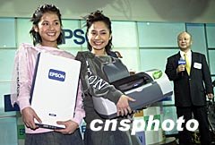 組圖:少女組合Twins展示EPSON新型號(hào)產(chǎn)品 2002年04月17日 08:12 ![]() 少女組合Twins16日出席《EPSON至出色組合》記者會(huì),Twins獲委任EPSON香港區(qū)新一代代言人,EPSON香港有限公司董事長(zhǎng)北原敬三先生(后)分別向Twins送上EPSON彩色影像掃描器及彩色噴墨打印機(jī)。中新社圖 鄧慶樂(lè) 攝