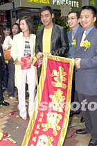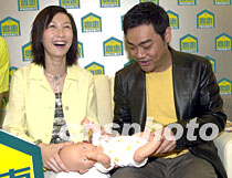 組圖:影星劉青云夫婦為實(shí)惠新店開幕剪彩 2002年04月20日 20:22 ![]() 影視紅星劉青云、郭藹明兩夫婦20日出席實(shí)惠家居用品新店開幕,實(shí)惠集團(tuán)致送BB公仔予兩夫婦,喻意祝兩位早生貴子。劉青云為“BB”公仔試穿衣服,引得身旁的郭藹明哈哈大笑。鄧慶樂(lè) 攝