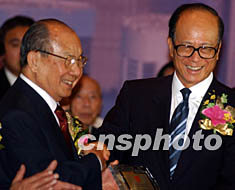 ![]() 擁有一百萬潮藉人口、一百多個(gè)潮藉社團(tuán)的香港,4月23日成立了“香港潮屬社團(tuán)總會”, 主席陳偉男向出任榮譽(yù)會長的香港長實(shí)集團(tuán)主席李嘉誠頒發(fā)證書。中新社記者 任晨鳴 攝