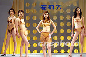 圖:上海國(guó)際服裝文化節(jié)上演時(shí)尚內(nèi)衣秀 2002年04月27日 09:02 ![]() 二○○二“中華杯安莉芳”國(guó)際內(nèi)衣設(shè)計(jì)大賽二十五日在上海世貿(mào)商城舉行。圖為模特在展示中外年輕設(shè)計(jì)師們?cè)O(shè)計(jì)的富有新意的內(nèi)衣。中新社圖 湯彥俊 攝
