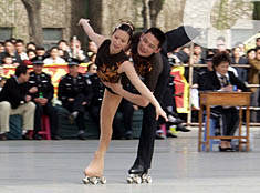 圖:中國花樣輪滑精英賽上海輪滑隊(duì)獲冠軍 2002年05月08日 10:15 ![]() 七日,在中國吉林市舉行的中國花樣輪滑精英賽上,上海輪滑隊(duì)選手田柳、林峰獲得雙人滑短節(jié)目冠軍。中新社圖 韓丹 攝