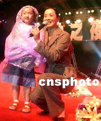 圖:毛阿敏冒雨為浙江省天臺(tái)山文化旅游節(jié)演唱 2002年05月09日 10:51 ![]() 5月8日晚,浙江省天臺(tái)山文化旅游節(jié)文藝晚會(huì)正式開始,上萬(wàn)名群眾井然有序地冒雨觀看演出,表現(xiàn)了山城人民良好的精神風(fēng)貌。圖為小女孩為冒雨演唱的毛阿敏送花,毛阿敏深受感動(dòng)。中新社圖 丁必裕 張浙東 攝