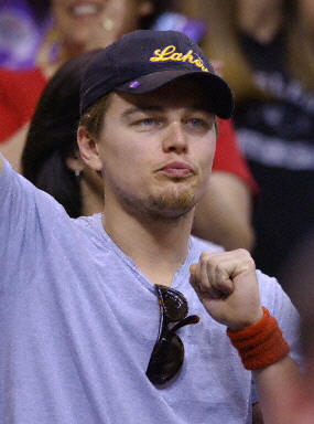 圖:萊昂納多關(guān)注NBA西區(qū)決賽 2002年05月27日 14:28 5月26日美國(guó)演員萊昂納多在NBA西區(qū)決賽上為洛杉磯湖人隊(duì)歡呼。湖人隊(duì)以100-99戰(zhàn)勝國(guó)王,雙方總比分戰(zhàn)成2比2平。法新供中新