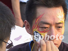 圖:京城流行“世界杯人體彩繪” 2002年06月02日 12:44 ![]() 隨著2002世界杯足球賽的開賽,京城許多熱情的球迷在臉上等身體部位繪上世界杯的圖案。圖為一球迷在臉上繪上“飛火流星”足球的圖案,“世界杯人體彩繪”在京城流行起來。中新社記者 章永哲 攝