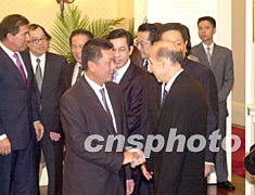 澳門政府與永利渡假村(澳門)股份有限公司簽約 2002年06月25日 08:33 ![]() 澳門特區(qū)行政長官何厚鏵二十四日與永利度假村(澳門)股份有限公司簽署協議后,與永利部分股東握手。李剛 攝