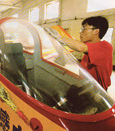 《新聞周刊》:中國天空將開放 私人飛機(jī)欲起飛 2002年08月01日 11:42 ![]() 不能起飛的飛機(jī):科源飛機(jī)公司的市場人員在擦試飛機(jī)上的灰塵。由于空管限制每次升空均需復(fù)雜程序。