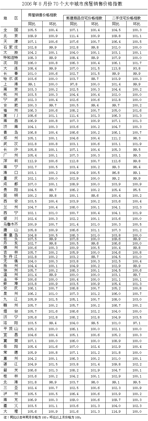 數(shù)據(jù)顯示,新建商品住宅銷售價格同比上漲7.1%,漲幅比上月高0.4個百分點。與去年同月相比,經(jīng)濟適用房、高檔住宅銷售價格分別上漲4.1%和8.3%,漲幅均比上月低0.6個百分點;普通住宅銷售價格上漲6.6%,漲幅比上月高1.1個百分點。與上月相比,經(jīng)濟適用房銷售價格止跌轉(zhuǎn)升,上漲0.2%;普通住宅、高檔住宅銷售價格分別上漲0.4%和0.5%,漲幅比上月分別低0.1和0.4個百分點。分地區(qū)看,與去年同月相比,新建商品住宅銷售價格上漲的城市有68個,約占全部調(diào)查城市的97%,只有溫州住宅銷售價格持平,上海下降2.2%。與上月相比,新建商品住宅銷售價格上漲的城市有52個,約占全部調(diào)查城市的74%。