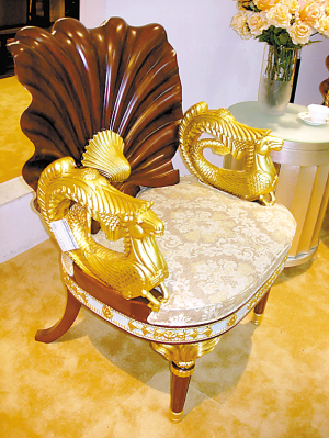 炎炎夏日,貝殼是能為人們帶來清涼氣息的造型代表。這張“貝殼椅”的椅背被設(shè)計(jì)成貝殼狀,它完全由手工制成,價(jià)值不菲。扶手部位的動(dòng)物雕花是先雕刻出來后再在上面鍍了一層24K的工業(yè)金,與黃金同樣顯現(xiàn)奢華氣派卻更容易打理;為了配合這一季的特點(diǎn),椅子的腰背部位裝飾著一顆真正的貝殼,華貴中又帶著撲面而來的海洋氣息。