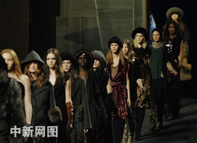 2006年2月6日,紐約時(shí)裝周,模特在展示Marc Jacobs設(shè)計(jì)的新款秋裝。華麗的細(xì)節(jié)使Marc Jacobs的作品總能奪目而不夸張。時(shí)尚的風(fēng)向已經(jīng)從對奢華永無止境的追求變成了現(xiàn)在的簡單低調(diào)。設(shè)計(jì)師不再大面積使用皮草,而是將其作為點(diǎn)綴,使時(shí)裝展現(xiàn)出低調(diào)的奢華。