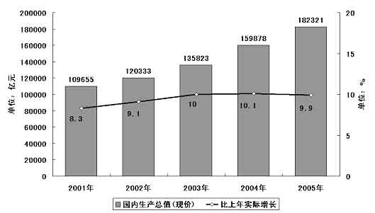 圖表一 “十五”期間國(guó)內(nèi)生產(chǎn)總值及其增長(zhǎng)率