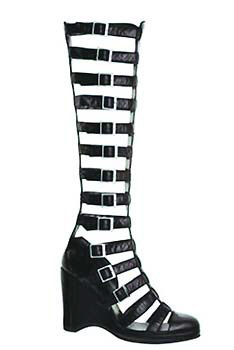 在今季的靴型涼鞋中,黑與白的配搭組成了另一條個性分明的戰(zhàn)線,一向品位出眾的國際品牌Chanel便是個中極品,Chanel今季推出的一款扣帶鏤空楔型靴,密密麻麻的綁帶一直蔓延到膝蓋處,金屬的扣夾加上復古的圓頭坡跟,帶有一絲浪漫中性的軍旅風格。其另一款則沿用了干練的短靴設(shè)計風格,在腳腕處柔軟的白色皮質(zhì)上方,纏以簡練的黑色線條,黑與白的完美配搭帶一點后現(xiàn)代的前衛(wèi)感覺。