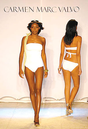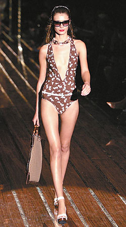 中新網(wǎng)4月13日電 據(jù)廣州日報報道,早在上個季末各大時裝周發(fā)布2006年春夏時裝上,Gucci、JeanPaulGaultier等國際大品牌和設(shè)計師便已經(jīng)將精心設(shè)計的泳裝新款呈現(xiàn)于觀眾面前。隨著夏天的臨近,從近期巴塞羅那、里約熱內(nèi)盧的泳裝秀上看到,今年春夏的泳裝新品更加年輕化,其中,年輕美眉熱愛的清純、度假、叢林以及鄉(xiāng)村這四大風(fēng)格的泳裝備受關(guān)注。