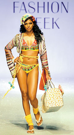 今年春夏,設(shè)計師受到了非洲、印度民族服裝特色的影響,紛紛推出了充滿熱帶叢林風(fēng)情的泳裝。