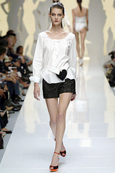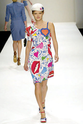 Rebecca Taylor的乖乖女設(shè)計(jì),讓我們看到了充滿學(xué)生味的情竇初開(kāi),同樣將愛(ài)心做成口袋的還有Eley Kishimoto,將絲綢和蕾絲拼合而成的短裙,那個(gè)醒目的紅色愛(ài)心不時(shí)跳躍在模特輕松的步伐上。愛(ài)心的另一種表現(xiàn)則被設(shè)計(jì)師們巧妙地運(yùn)用在了腰帶上,Luella和Moschino的愛(ài)心都不約而同地被安置在了腰帶上,原來(lái)對(duì)現(xiàn)代女生而言不用金箭也是可以將愛(ài)心牢牢綁住的。