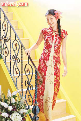另一個新派旗袍的重要元素,是七彩鮮艷的顏色,代表喜氣洋洋,尤其適合膚色黝黑的新娘子,令她們看上去更加醒目,艷光四射。菏缑/文;陳富權(quán)、方偉堅/攝)