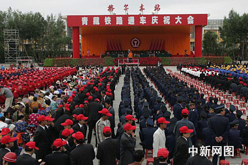 據(jù)中新社報道,通車慶典的主會場——格爾木火車站廣場上目前已是花團錦簇,奧運五環(huán)標(biāo)志和福娃“迎迎”在花叢中笑迎各方賓客。慶典的最后彩排工作正在一片鑼鼓聲中漸趨熱烈,隨風(fēng)飄揚的中國式紅色彩旗、條幅亦是隨處可見。