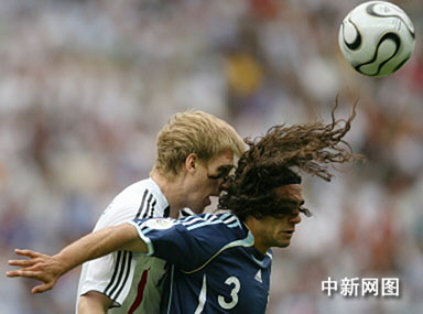 德國(guó)與阿根廷兩大足球豪門在世界杯歷史上兩次決賽相遇,各勝一場(chǎng),第三度的交手今天在二00六年德國(guó)世界杯第一場(chǎng)四分之一決賽中上演。這場(chǎng)世紀(jì)大戰(zhàn),開場(chǎng)并沒有上演精彩的攻勢(shì)足球,雙方打得非常拘謹(jǐn),唯一一次亮點(diǎn)就是德國(guó)隊(duì)的施奈德助攻,巴拉克后排插上頭球攻門,可惜力量稍大偏出門柱。