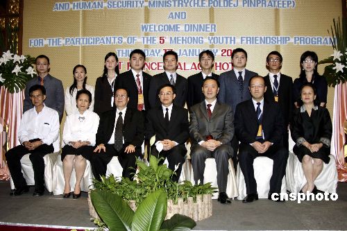 一月十七日,泰國社會發(fā)展與人類保障部副部長蓬得·炳巴提在曼谷禮節(jié)性會見了來自大湄公河次區(qū)域的中國、緬甸、泰國、柬埔寨、老撾和越南六國的青年代表,并分別與中國等六國青年代表團合影。中新社發(fā) 孫宇挺 攝