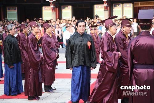 圖:臺灣領(lǐng)導人馬英九參加臺北祭孔大典