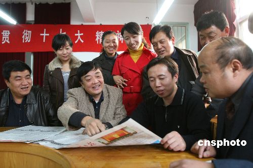 10月23日,河南省開封市文化藝術(shù)學(xué)校的黨員干部正聚在一起學(xué)習(xí)貫徹“十七大”會(huì)議精神。中國(guó)共產(chǎn)黨第十七次全國(guó)代表大會(huì)剛剛閉幕,河南省開封市各界黨員干部和群眾迅速掀起學(xué)習(xí)貫徹十七大精神的熱潮,大家紛紛表示要以十七大精神為動(dòng)力推動(dòng)當(dāng)前工作,堅(jiān)持開拓進(jìn)取、不斷創(chuàng)新,譜寫人民美好生活新篇章。中新社發(fā) 凱楓 攝