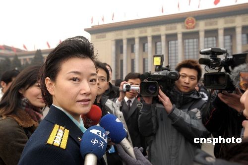 三月八日上午,全國政協(xié)十一屆一次會議第二次全體會議在北京人民大會堂舉行,會前,各路媒體記者在大會堂前的天安門廣場追訪家喻戶曉的歌星宋祖英委員。中新社發(fā) 廖攀 攝