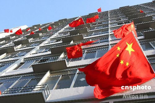 4月22日,北京理工大學(xué)多處宿舍樓紛紛掛出國旗,理性表達(dá)愛國熱情,其中毗鄰?qiáng)W運場館的北理工體育館新1樓南側(cè)掛有近70面國旗。據(jù)了解,該樓住有各學(xué)院的本科生逾2000人,上周六便有人掛起國旗,21日午后雨過天晴后不少宿舍紛紛響應(yīng)。該校新聞發(fā)言人賀亞蘭表示,學(xué)生在自己宿舍掛國旗,是理性的正常愛國舉動。中新社發(fā) 鄭雄增 攝
