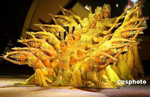 三月八日晚,北京,慶!叭恕眿D女節(jié)文藝晚會在全國政協(xié)委員駐地上演,邰麗華領銜的“千手觀音”表演把氣氛推向高潮。中新社發(fā) 盛佳鵬 攝