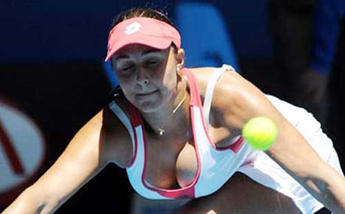 這位舉止火爆的奧地利女選手已經(jīng)成為今年澳網(wǎng)的熱點(diǎn)話題之一。當(dāng)然大家討論的重點(diǎn)不是她的球技而是她暴露的穿著。用美國(guó)媒體的話說,“觀眾并不關(guān)心她打得怎樣。他們只希望她能夠走得越遠(yuǎn)越好,因?yàn)檫@樣他們才能有的看!