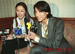 由著名模特瞿穎、胡兵、琦琦出任股東的京港合資公司--北京種星堂文化藝術交流有限公司7月15日在北京成立,圖為胡兵(右)、琦琦在該公司成立儀式上接受媒體的采訪。中新社記者:張勤 攝