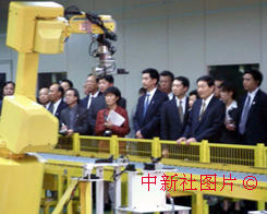 正在日本訪問的中國總理朱镕基今天參觀了日本法納克公司。位于日本山梨縣的法納克公司是目前世界上規(guī)模最大的產(chǎn)業(yè)機器人制造公司。中新社記者 陶光雄 攝