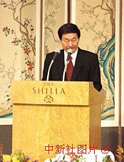 中國總理朱镕基18日在出席韓國經濟界舉行的午餐會上發(fā)表演講。中新社記者 王曉暉 攝