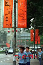 圖文:馬路燈柱上裝飾澳門回歸字樣條幅 2000年12月13日 11:09 ![]() 澳門新口岸馬路燈柱上裝飾出澳門回歸字樣條幅,為即將迎來回歸一周年的澳門街頭增添了節(jié)日氣氛。中新社記者 滿會喬 攝