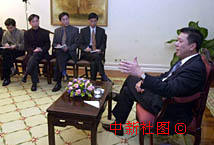 在澳門回歸祖國一周年之際,行政長官何厚鏵十三日在禮賓府接受內(nèi)地傳媒集體采訪。中新社傳真 宗金柱攝