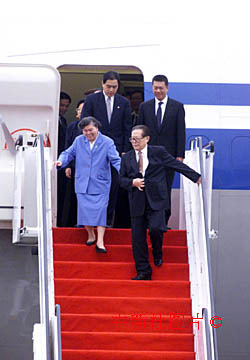 圖文:國家主席江澤民抵達(dá)澳門 2000年12月19日 17:37 ![]() 中國國家主席江澤民19日抵達(dá)澳門特區(qū)出席慶祝澳門回歸一周年慶典活動,中國邊防海警炮艇清晨在澳門海域戒備,作好安全保護(hù)工作。中新社傳真洪少葵攝 中新社澳門十二月十九日電(記者 陳立宇 趙健)中共中央總書記、國家主席、中央軍委主席江澤民乘坐的專機(jī)于今天十六點二十八分抵達(dá)澳門國際機(jī)場,江澤民主席和夫人王冶坪在澳門特別行政區(qū)行政長官何厚鏵的陪同下步下舷梯,踏上了澳門這塊剛剛回歸祖國一周年的土地。 T型的鮮紅地毯從舷梯一直鋪到江主席的座車前。歡迎人群列隊站立在地毯旁,“熱烈歡迎江澤民主席和夫人蒞臨澳門”的大型橫幅十分醒目。 一百五十多位小朋友以及一百一十多位澳門市民冒著細(xì)雨,揮舞著國旗、區(qū)旗和花束,歡迎江澤民主席一行的到來。 伴隨著澳門警察銀樂隊演奏的歡迎曲,澳門培正中學(xué)小學(xué)部十歲的女學(xué)生容韻琳和濠江中學(xué)小學(xué)部九歲的男學(xué)生岑啟彥,向江澤民主席和夫人王冶坪獻(xiàn)上了鮮花。滿面笑容的江澤民主席再次親吻了去年也曾向他獻(xiàn)花的容韻琳小姑娘,歡迎人群中響起熱烈的掌聲。 江澤民主席同前來迎接的全國政協(xié)副主席馬萬祺、何厚鏵夫人劉渭楨以及澳門特別行政區(qū)主要官員曹其真、岑浩輝、陳麗敏、譚伯源、張國華、崔世安、歐文龍、張裕、蔡美莉、何超明、白英偉、徐禮恒等一一握手。 中央人民政府駐澳門特別行政區(qū)聯(lián)絡(luò)辦公室主任王啟人、外交部駐澳門特別行政區(qū)特派員原燾、中國人民解放軍駐澳部隊司令員劉粵軍以及先期抵達(dá)的公安部副部長田期玉、國務(wù)院港澳辦副主任陳佐洱、國務(wù)院新聞辦副主任李冰等也到機(jī)場迎接江主席一行。 江澤民主席的主要陪同人員:國務(wù)院副總理錢其琛夫婦、中國人民解放軍總政治部主任于永波上將、中共中央辦公廳主任王剛、國務(wù)院港澳辦主任廖暉等人同機(jī)抵達(dá)。 江澤民此行將在澳門停留至二十一日,參加一系列慶祝澳門回歸祖國一周年的活動。 |