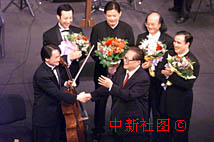 圖片:江澤民稱贊王健的演奏“動(dòng)人心弦” 2000年12月20日 16:42 國(guó)家主席江澤民在旅歐青年大提琴家王健演奏中國(guó)民樂《二泉映月》后,稱贊他的演奏“動(dòng)人心弦”。中新社傳真滿會(huì)喬攝 |