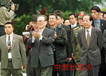新聞組照:江澤民、錢其琛、何厚鏵參觀澳門大炮臺(tái) 2000年12月20日 19:03 ![]() 國家主席江澤民、國務(wù)院副總理錢其琛、澳門特別行政區(qū)行政長官何厚鏵20日下午參觀澳門大炮臺(tái)。中新社傳真 滿會(huì)喬 攝 ![]() 國家主席江澤民、國務(wù)院副總理錢其琛、澳門特別行政區(qū)行政長官何厚鏵20日下午參觀澳門大炮臺(tái)時(shí),聽到游客問候后高興回應(yīng)。中新社傳真 滿會(huì)喬 攝