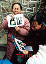 洛陽特大火災(zāi)遇難者遺體的認(rèn)領(lǐng)工作28日順利進(jìn)行。圖為一位剛剛找到兒子遺體的母親痛不欲生地展示兒子生前照片。中新社記者 慎重 攝