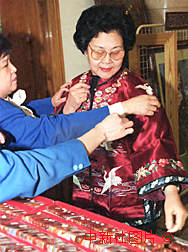 歌唱家于淑珍試穿民族服裝