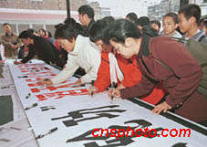 自天安門“法輪功”練習(xí)者自焚事件發(fā)生后,廣州各界人士紛紛舉行各種活動聲討“法輪功”的滔天罪行。八日,越秀區(qū)大新街的數(shù)千名居民簽名聲討邪教“法輪功”。中新社記者 梁永強(qiáng) 攝